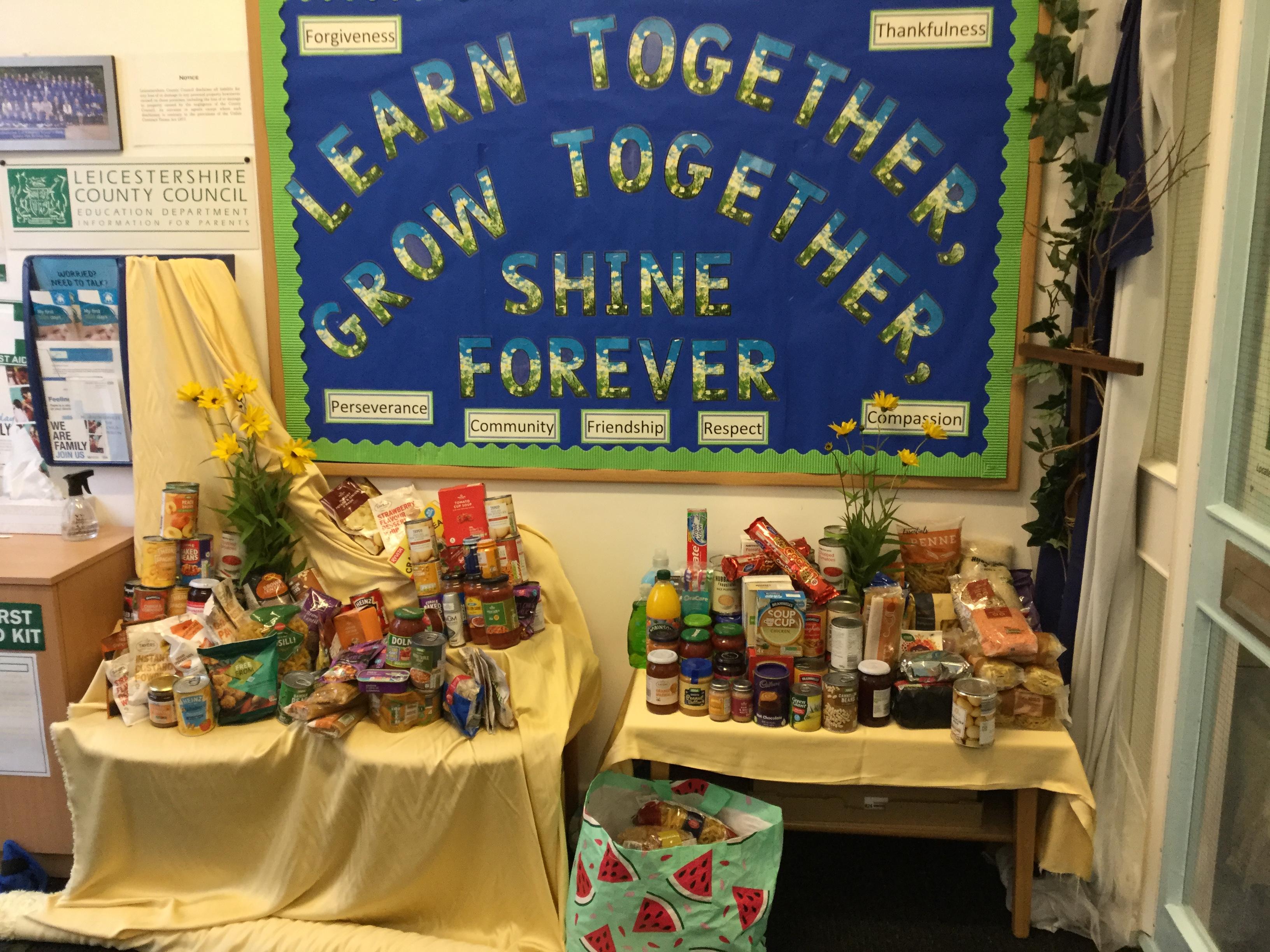 Harvest Festival 2021 included a collection for Lutterworth Foodbank.