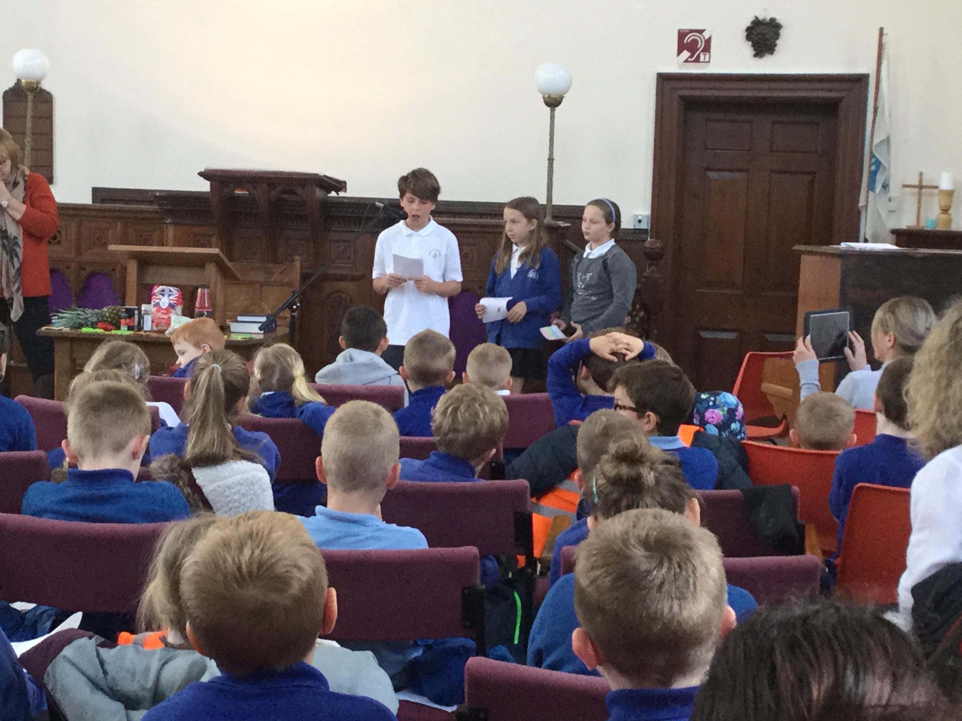 It was good to reflect on God's Creation and how we need to waste less and share more.  Some Year 5 expressed their thoughts by very ably leading our prayers.